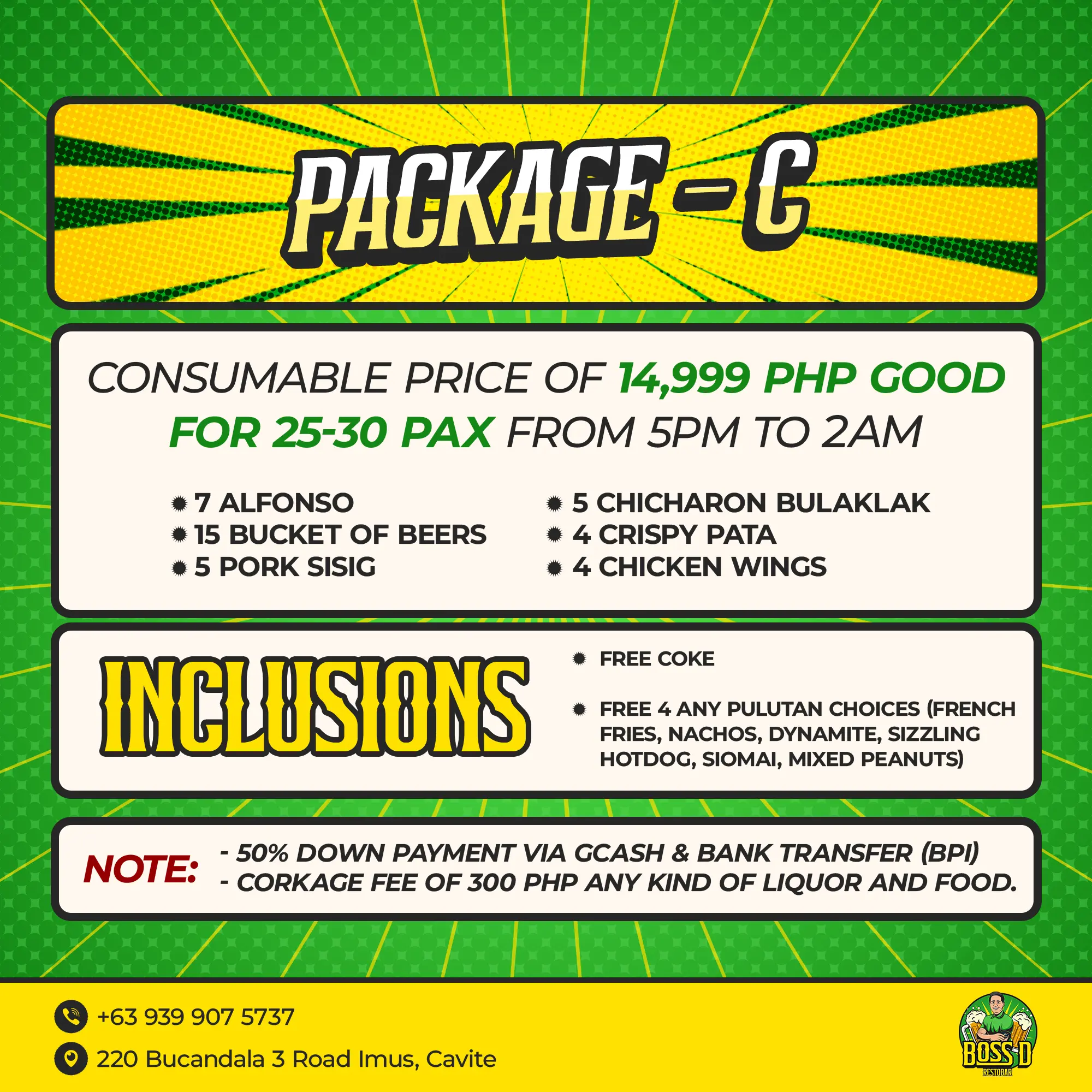 Consumable Price of 14,999 PHP Good For 25-30 PAX from 5pm to 2am