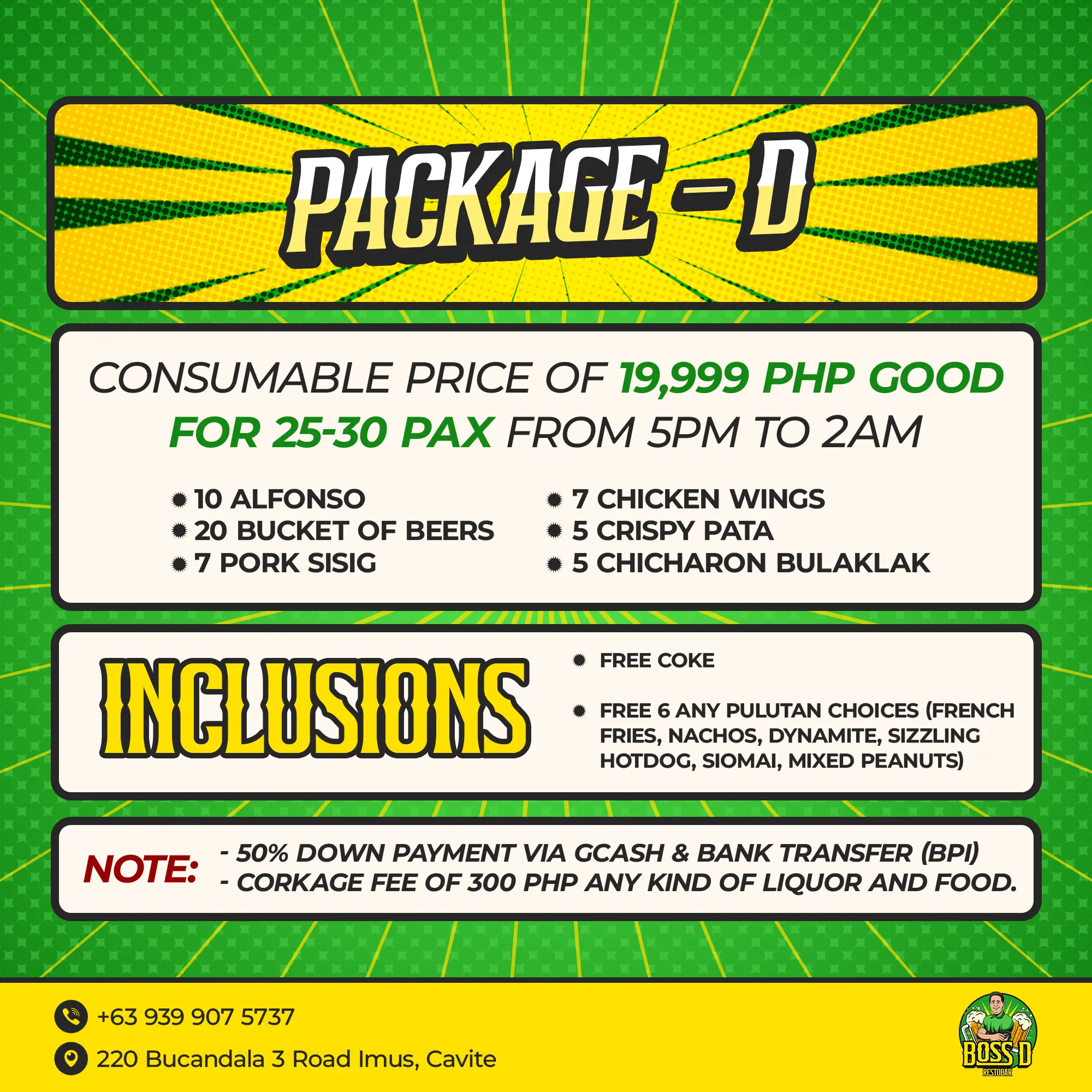Consumable Price of 19,999 PHP Good For 25-30 PAX from 5pm to 2am